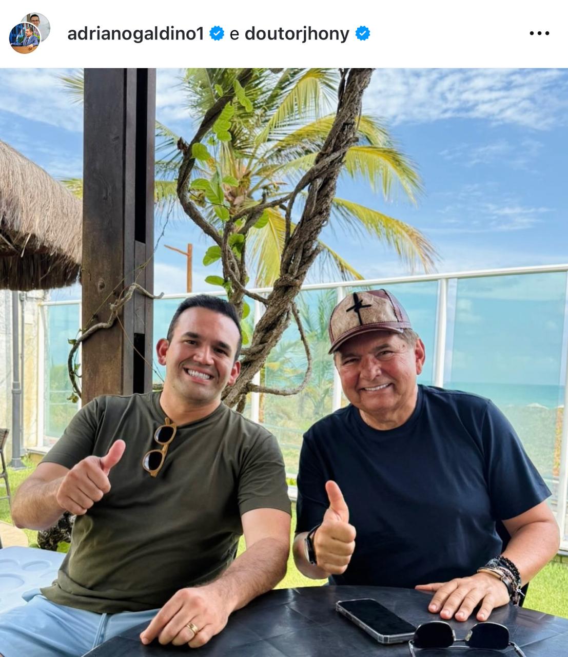 A publicação, feita na tarde do domingo (4) no Instagram, adotou um tom de convergência e planejamento eleitoral. Ao divulgar a imagem ao lado de Jhony Bezerra, Adriano Galdino destacou a importância do diálogo, da troca de ideias e do alinhamento político, reforçando a defesa de um projeto coletivo voltado ao próximo pleito.