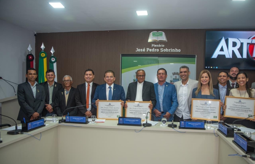 Por fim, o presidente da Câmara, Leandro Vieira, ressaltou a importância da cerimônia. "É com grande satisfação que recebemos amigos e ilustres visitantes, pessoas que colaboram ativamente para o desenvolvimento do município. Nesta primeira legislatura, temos a honra de conceder títulos de cidadania a indivíduos que se destacam por suas contribuições, a exemplo do presidente Adriano Galdino e da deputada Danielle do Vale", afirmou.