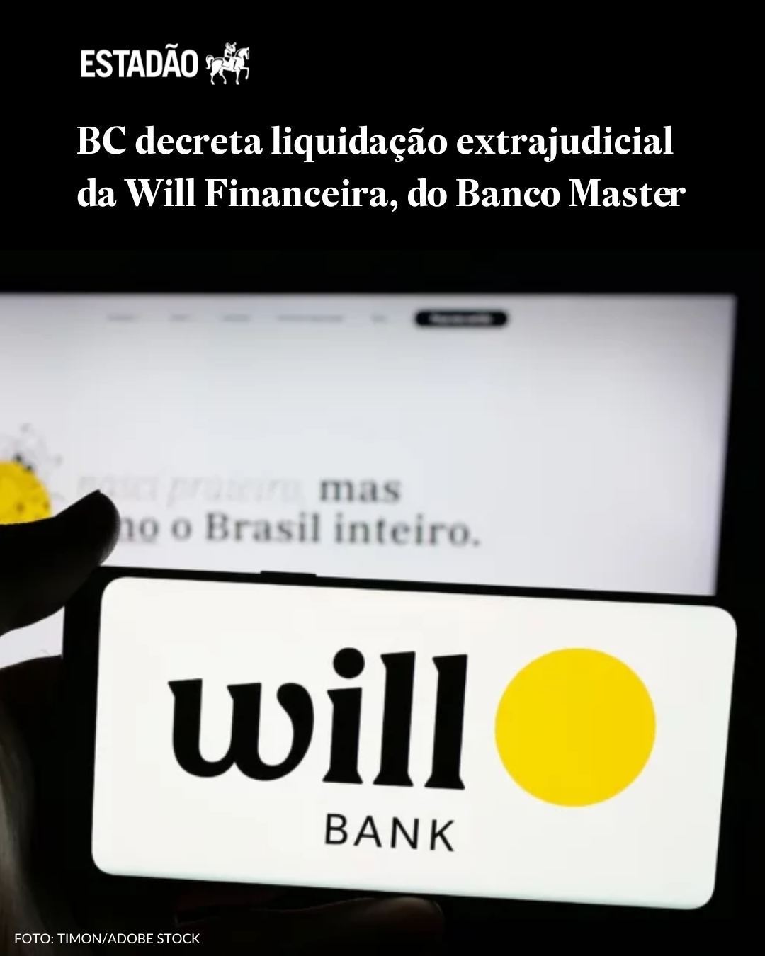 O BC nomeou o liquidante do Banco Master, Eduardo Bianchini, como liquidante também da Will Financeira. A autarquia também decretou a indisponibilidade de bens dos controladores da empresa.