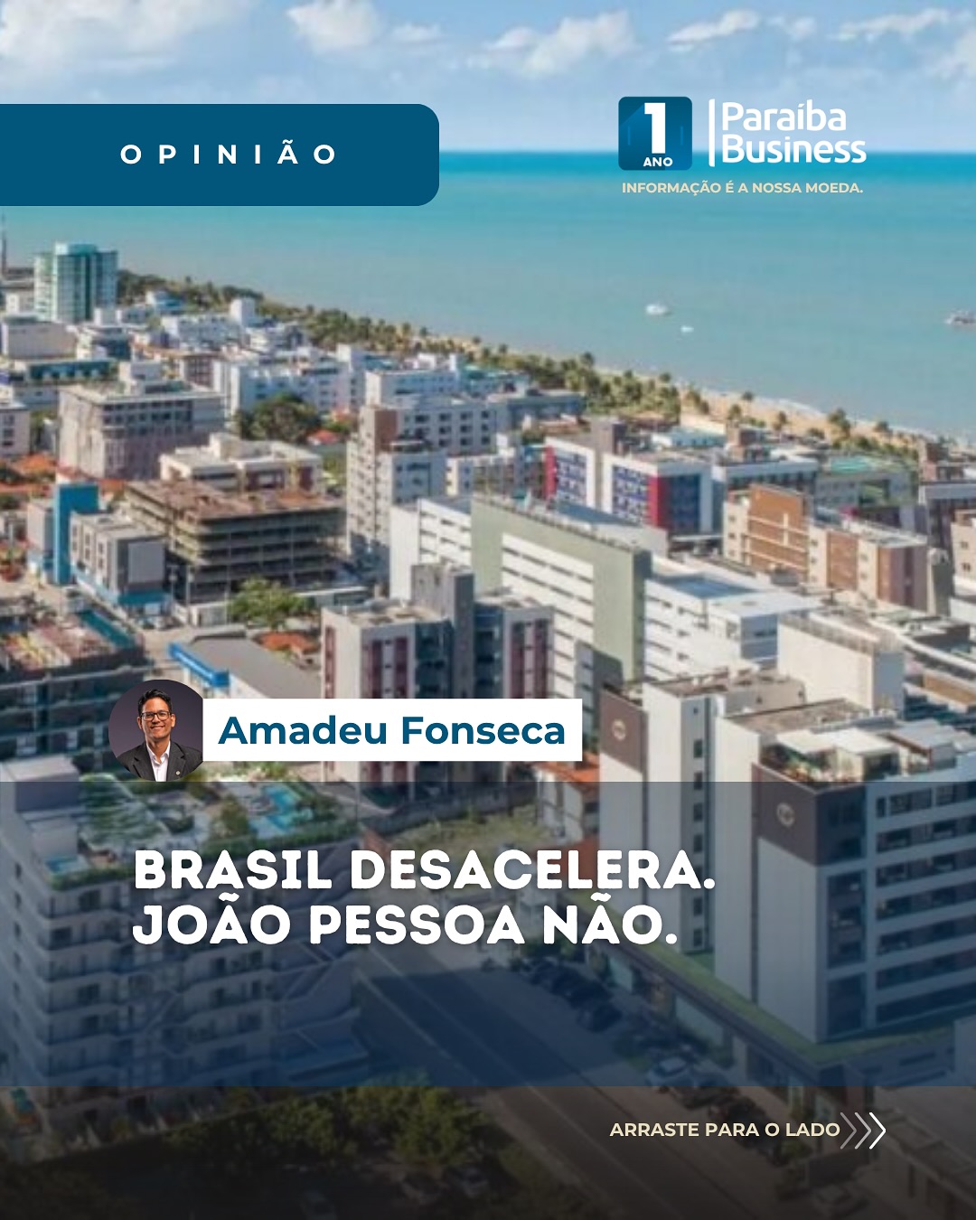 "Nos últimos meses, diversos indicadores nacionais têm apontado para um cenário de desaceleração econômica. Essa fotografia macroeconômica faz muitos empresários adotarem uma postura defensiva, adiando investimentos, contratações e expansão. No cenário nacional, há fundamento para essa cautela. Mas o erro estratégico está em observar somente o contexto macro, sem enxergar o que acontece no nível local. Em João Pessoa, a realidade é outra."