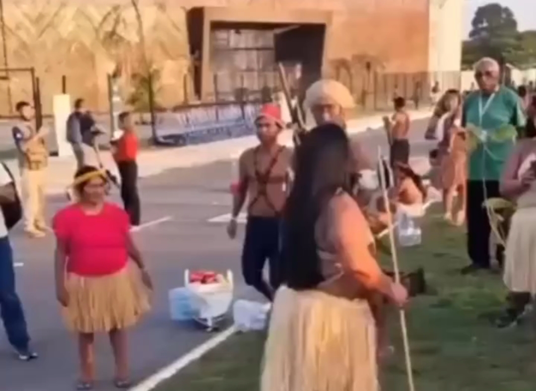 Na noite de terça-feira (11), um grupo de indígenas e integrantes do Coletivo Juntos, ligados ao PSOL, tentou acessar a área restrita a credenciados e foram contidos pela segurança.