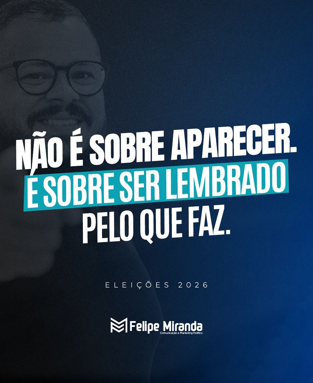 “Na política, aparecer é fácil. Difícil é ser lembrado pelo que se fez. O eleitor hoje está mais atento e quer ver trabalho, gestão e compromisso real com as pessoas”, destaca Felipe Miranda.