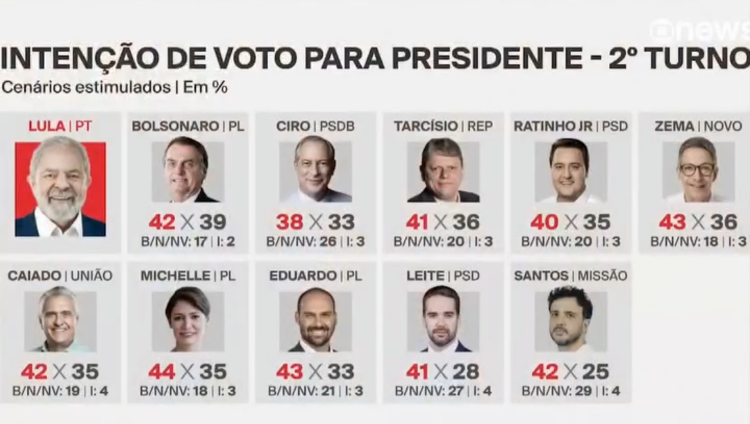"ANÁLISE - No #Estúdioi desta quinta-feira (13), Thomas Traumann analisou a pesquisa Quaest que apontou queda na vantagem do presidente Lula sobre adversários no 2º turno de 2026. Na mostra, o petista também aparece tecnicamente empatado com Jair Bolsonaro, que está inelegível.