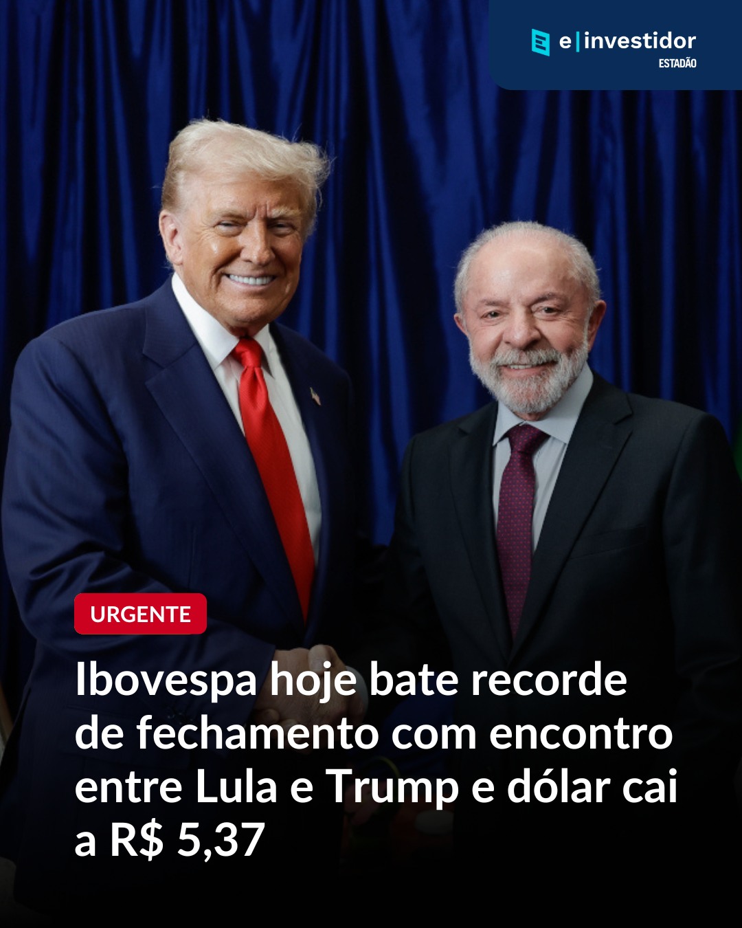 "O Ibovespa renovou seu recorde histórico de fechamento nesta segunda-feira (27), impulsionado pelo otimismo do mercado após o encontro entre o presidente dos EUA, Donald Trump, e o presidente Luiz Inácio Lula da Silva. O índice avançou 0,55%, aos 146.969,10 pontos. Mais cedo, chegou a atingir a marca inédita de 147.976,99 pontos na máxima intradia.