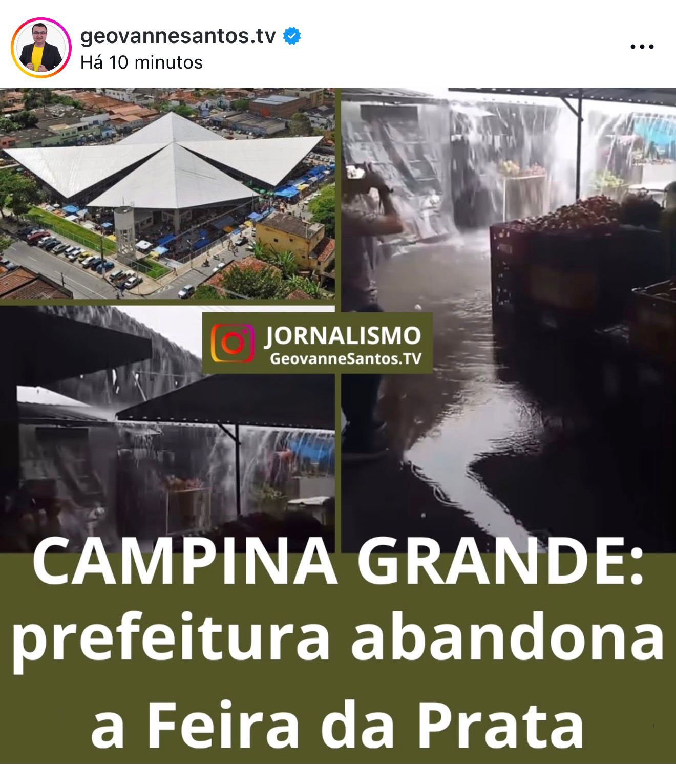 Imagens e registros feitos pelo jornalista mostram a precariedade do local, com setores danificados, deficiência na limpeza, falhas na infraestrutura e ausência de ações efetivas por parte da Prefeitura de Campina Grande para a recuperação da feira.