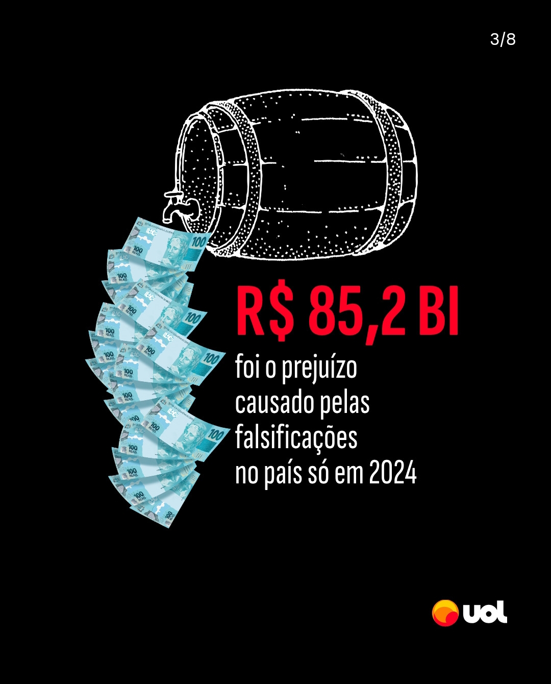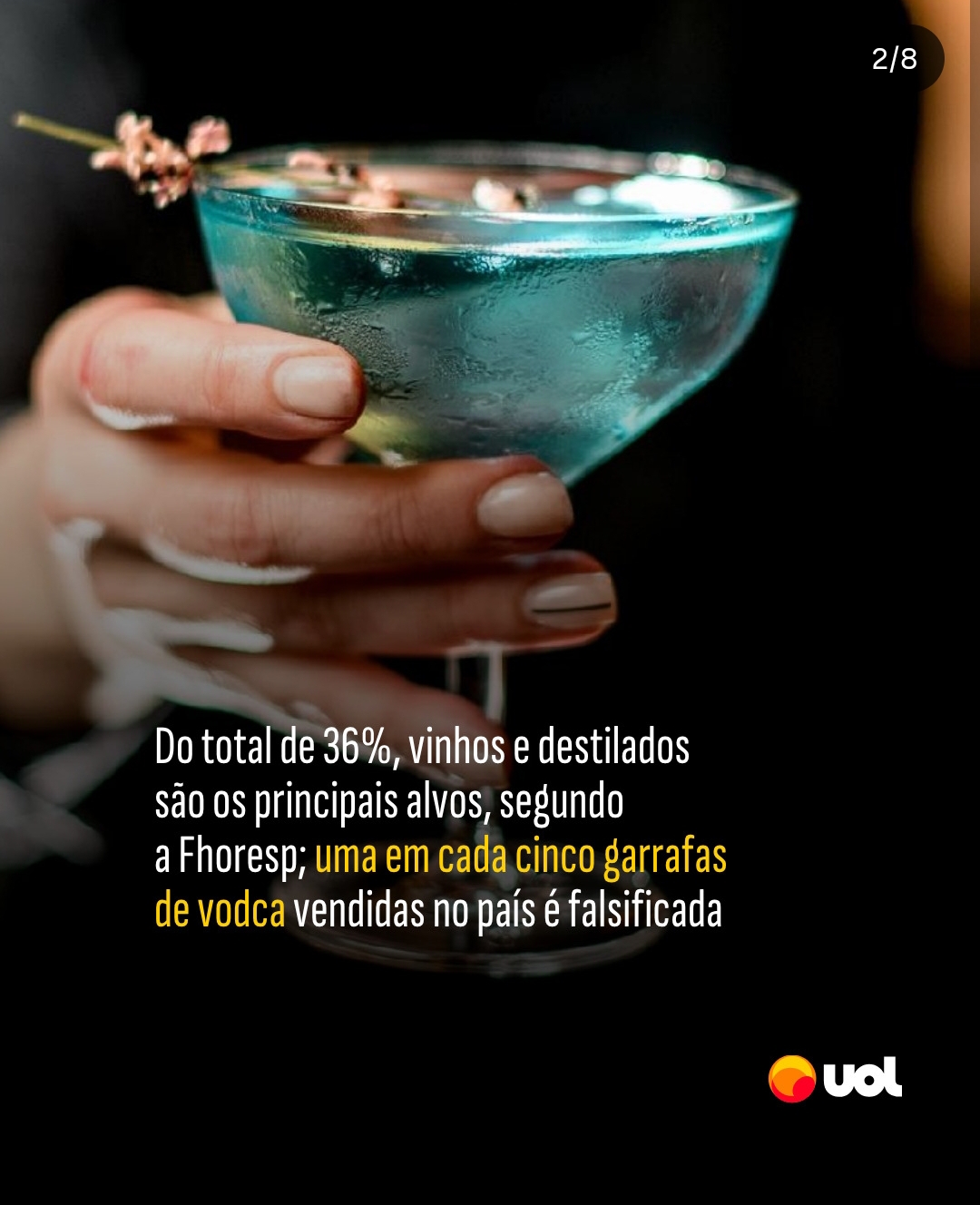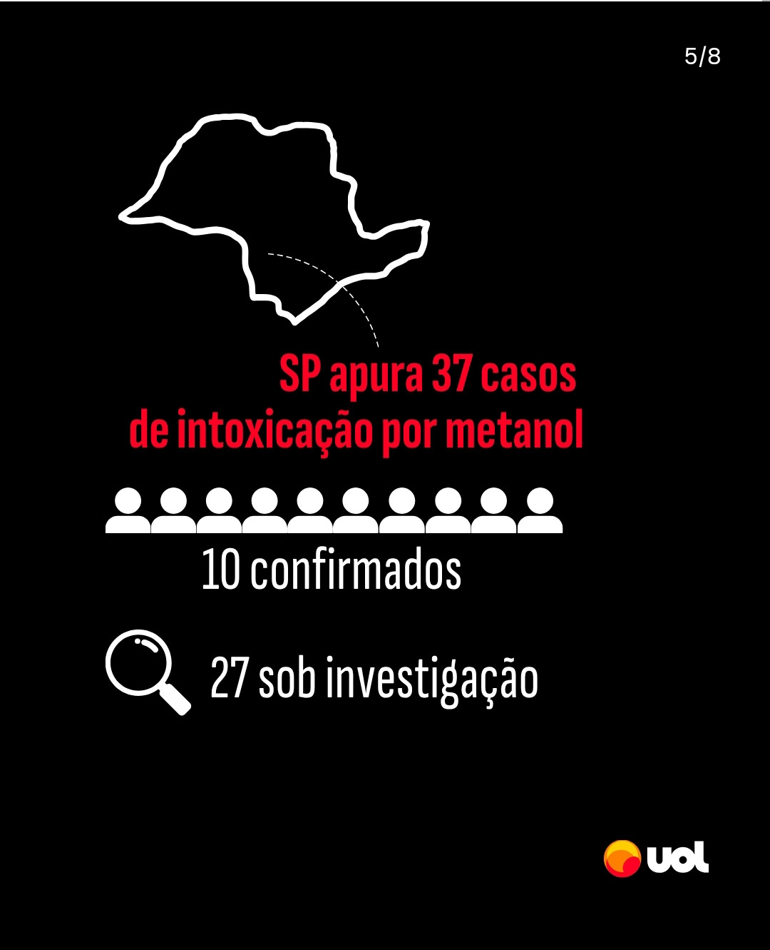 "Uma pesquisa da Federação de Hotéis, Restaurantes e Bares de SP (Fhoresp) mostrou que 36% das bebidas alcoólicas comercializadas no Brasil são forjadas, adulteradas ou contrabandeadas. Vinhos e destilados são os mais afetados; uma em cada cinco garrafas de vodca vendidas no país é falsificada. O prejuízo causado pelo problema em 2024 foi de R$ 85,2 bilhões, dos quais R$ 23 bilhões foi em SP, estado que vem enfrentando um aumento incomum de casos de intoxicação por metanol no último mês.