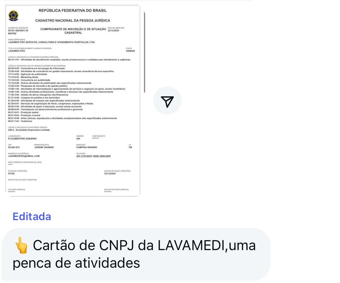 O endereço registrado no CNPJ da LAVAMEDI indica uma residência simples em Campina Grande — sem características estruturais de lavanderia industrial.