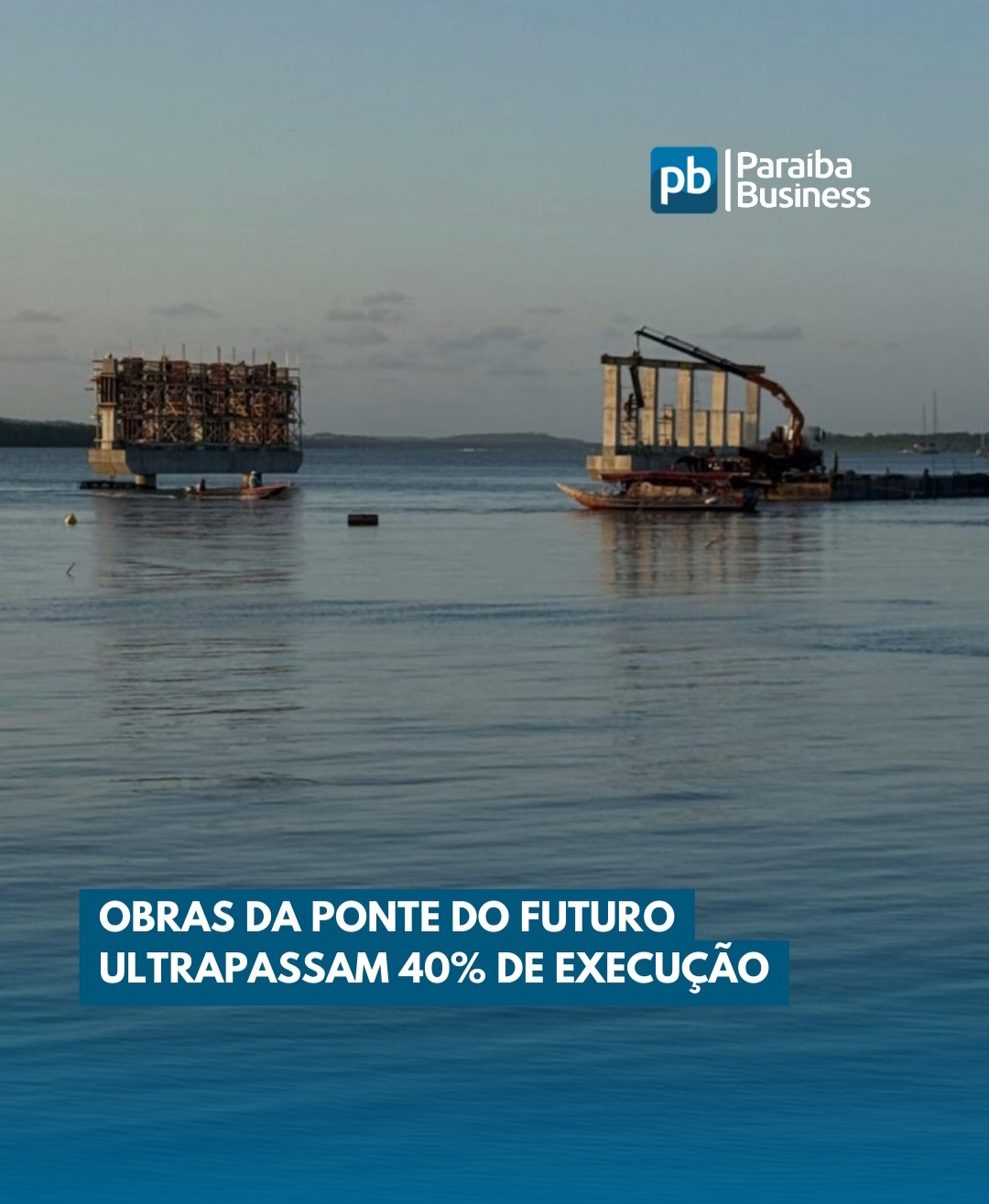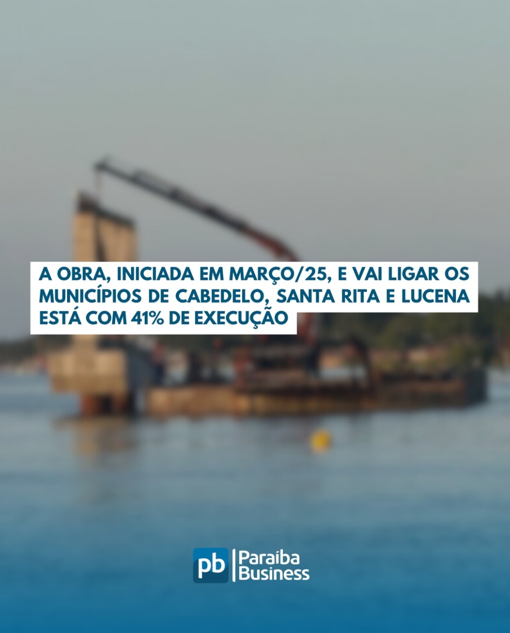 A obra, iniciada em março/25, e vai ligar os municípios de Cabedelo, Santa Rita e Lucena está com 41% de execução. O complexo terá duas pontes: uma 'principal' com 2 km, e outra com 420 metros. Também está prevista a construção de um viaduto sobre a linha férrea, com 40 metros.
