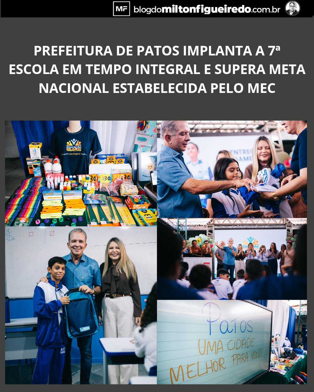 Com a nova implantação, Patos atingiu e superou a meta mínima de 25% da rede municipal com alunos matriculados em escolas de tempo integral, percentual estabelecido pelo Ministério da Educação (MEC). O município já ultrapassa essa marca, consolidando o compromisso com a ampliação do acesso a uma educação pública de maior permanência e qualidade.