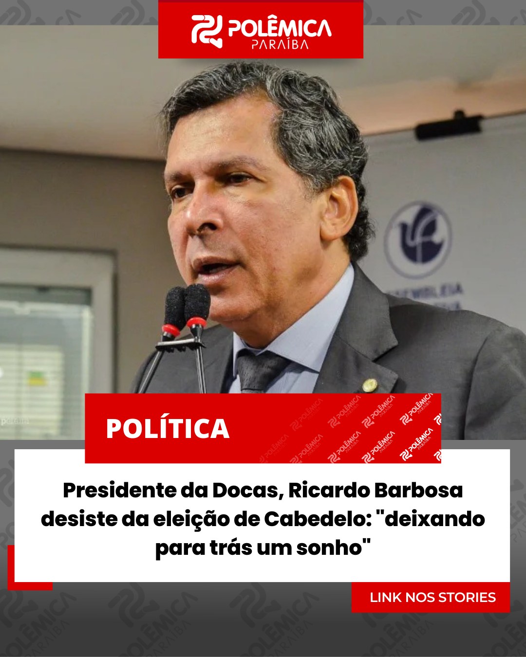 "Cabedelo - O presidente da Companhia Docas da Paraíba (Porto de Cabedelo), Ricardo Barbosa, anunciou, nesta quinta-feira (22), que desistiu da disputa pela eleição suplementar de Cabedelo, após diálogos e reuniões com o governador João Azevêdo, o presidente da Câmara, Hugo Motta, o deputado Aguinaldo Ribeiro e o vice-governador Lucas Ribeiro.