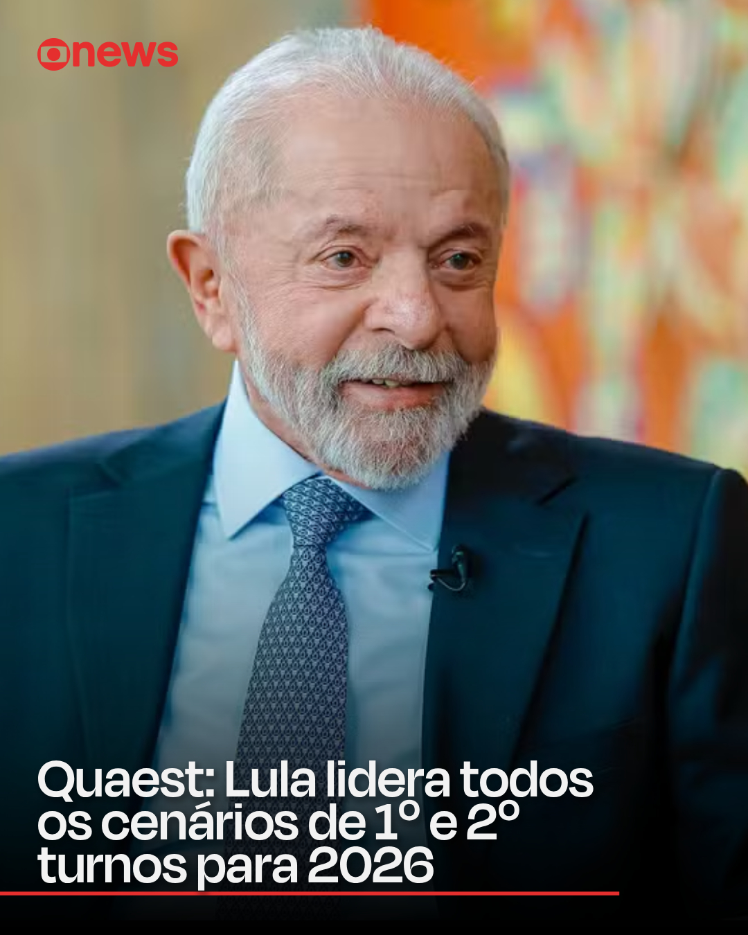 "ELEIÇÕES - Pesquisa Quaest divulgada nesta quinta-feira (9) indica que o presidente Lula mantém a liderança em todos os eventuais cenários de 1º e 2º turnos simulados para a disputa presidencial de 2026.