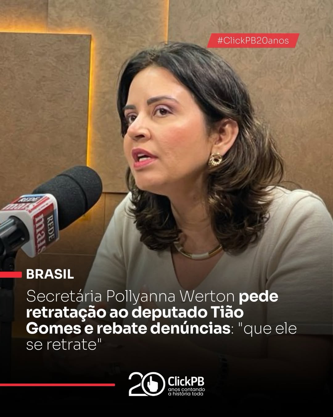 "A secretária de Estado do Desenvolvimento Humano, Pollyanna Werton, pediu retratação ao deputado estadual Tião Gomes após denúncias feitas por ele sobre supostas irregularidades na pasta. Em entrevista ao programa Arapuan Verdade, Pollyanna afirmou que o parlamentar não esteve na secretaria, que as emendas seguem seus trâmites legais e que os recursos não são geridos diretamente pela SEDH, mas pelo setor de finanças do Estado. A secretária também disse desconhecer as críticas até a divulgação pública e destacou que o deputado teve todo o ano para buscar esclarecimentos, pedindo que ele se retrate pelas declarações.