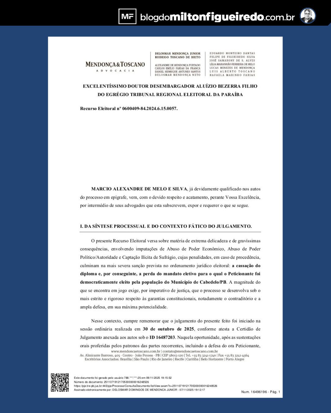 #️⃣ #ExclusivoMF #Cabedelo #AndréCoutinho #TREPB #Cassação #JustiçaEleitoral #OperaçãoEnPassant #Corrupção #Paraíba #PolíticaPB