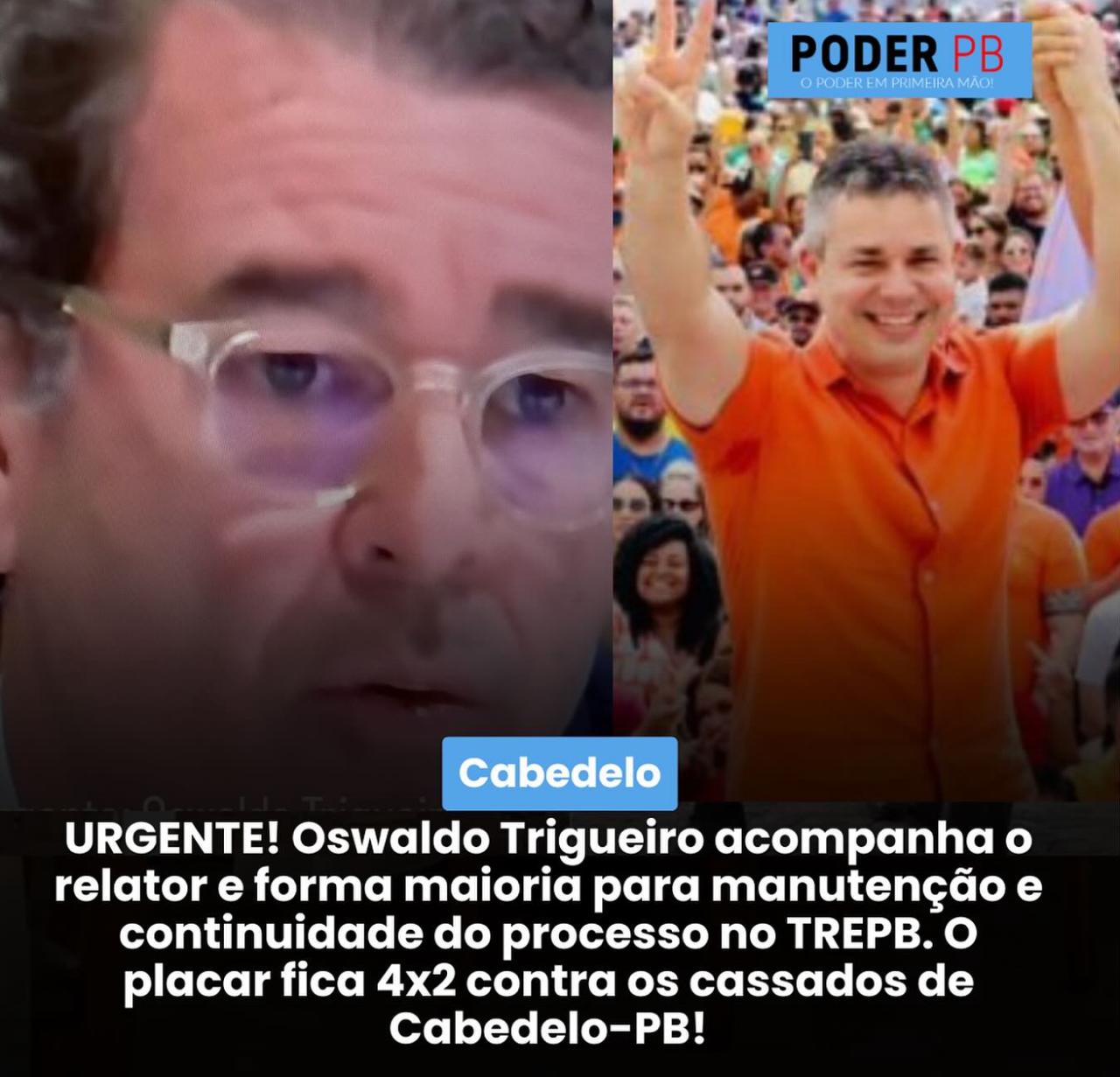 "O julgamento das cassações de mandatos em Cabedelo ganhou um novo movimento decisivo nesta segunda-feira com o voto do desembargador Oswaldo Trigueiro, que acompanhou integralmente o relator e ajudou a consolidar maioria pela continuidade do processo no Tribunal Regional Eleitoral da Paraíba (TRE-PB).