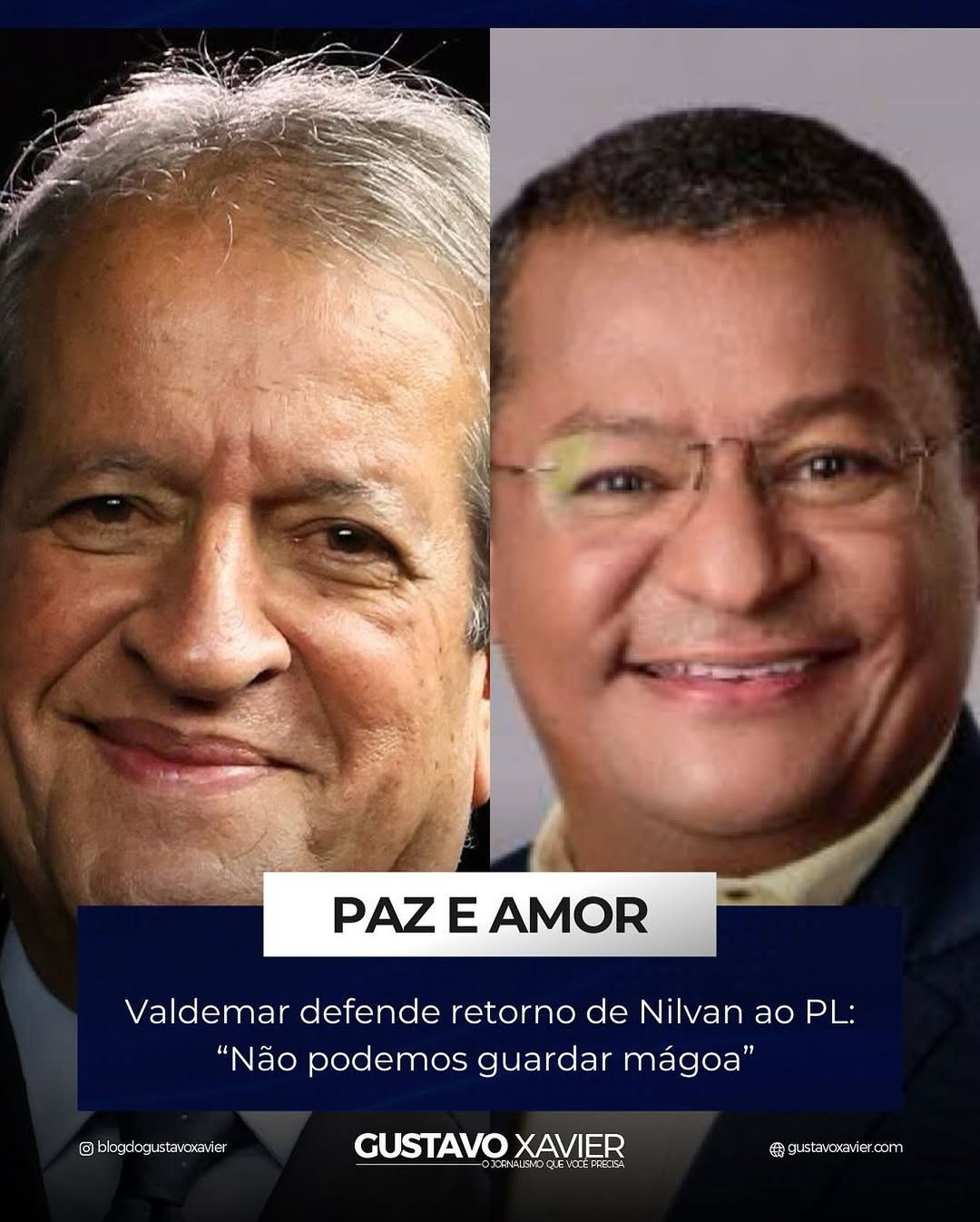 Nilvan Ferreira já foi do PL em 2022, quando concorreu a governador e ficou na 3º colocação. Atualmente é pré-candidato a deputado estadual e tem defendido o ex-presidente Jair Bolsonaro com firmeza nas redes sociais. Agora é aguardar se o comunicador vai aceitar o 'chamamento' de Valdemar."