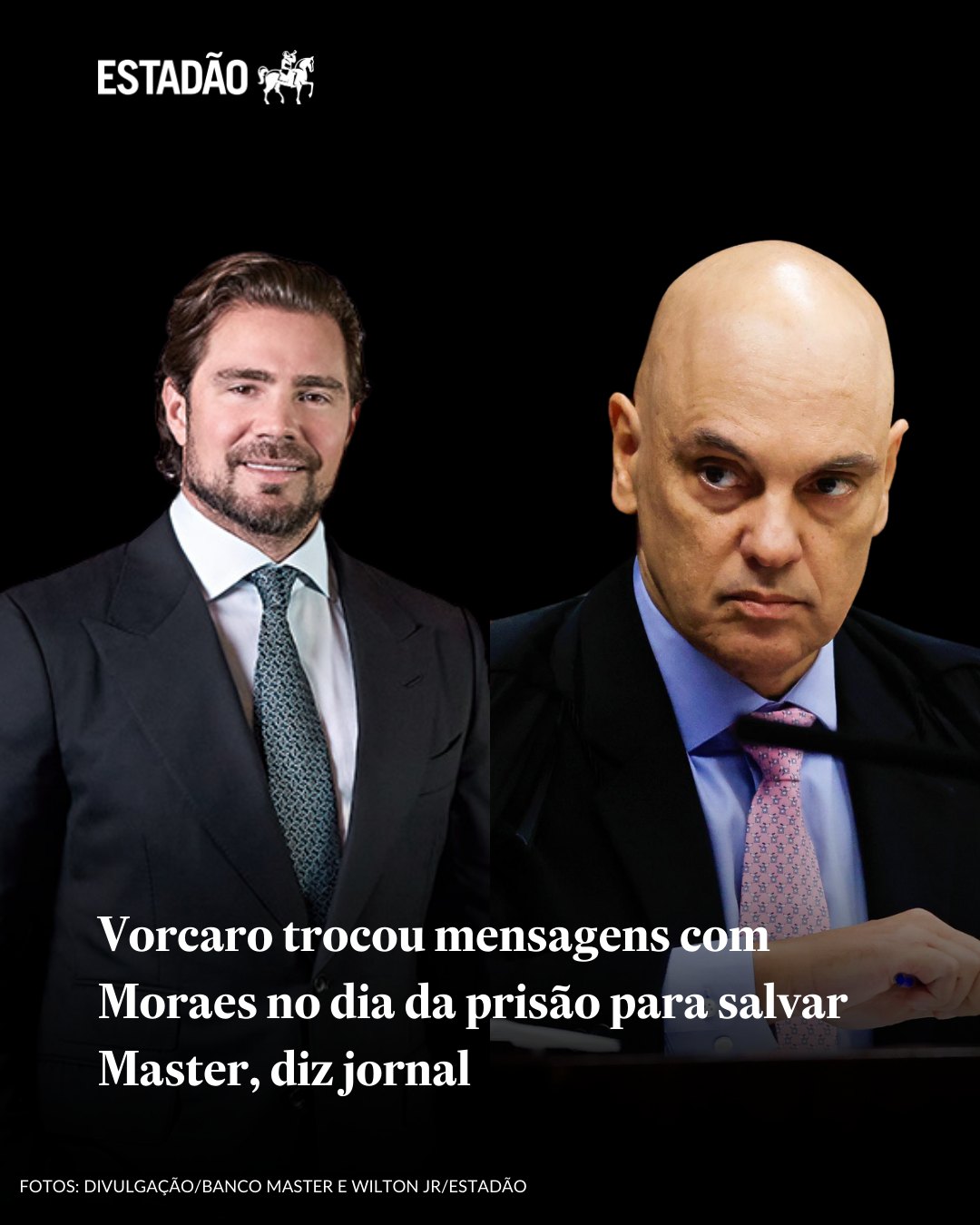 "CASO MASTER | Daniel Vorcaro e Alexandre de Moraes trocaram mensagens pelo WhatsApp durante todo o dia 17 de novembro de 2025, data em que o banqueiro foi preso pela PF, segundo informações da colunista Malu Gaspar, do jornal 'O Globo'.