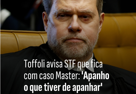 Toffoli avisa STF que fica com caso Master: 'Apanho o que tiver de apanhar'