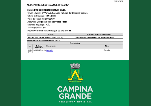 URGENTE - UMA DAS MAIORES VERGONHAS DA HISTÓRIA DA CIDADE: VEJA O DOCUMENTO DA JUSTIÇA COM A SENTENÇA DO DESPEJO DA SECRETARIA DE ADMINISTRAÇÃO DA PREFEITURA DE CAMPINA GRANDE