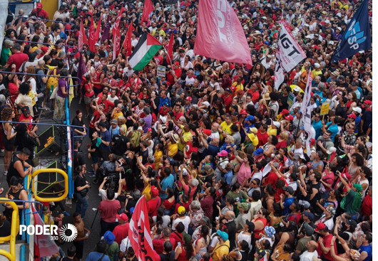 Esquerda teve grande bandeira do Brasil, mas vermelho prevaleceu