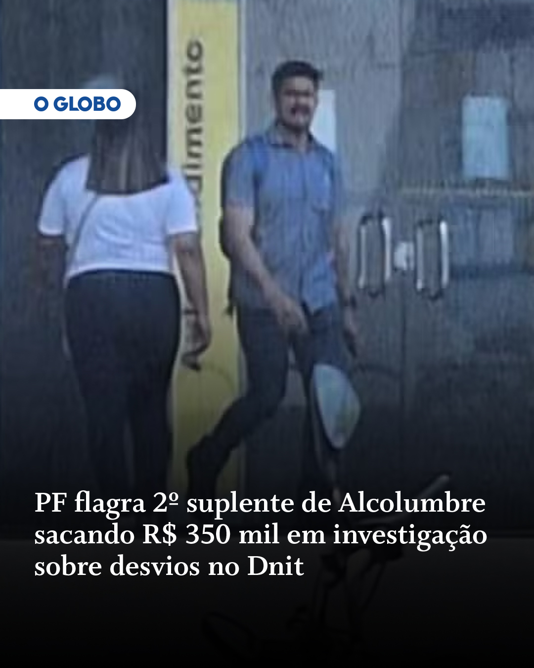 "'LAVAGEM DE CAPITAIS' | A Polícia Federal (PF) flagrou o empresário Breno Chaves Pinto, segundo suplente do presidente do Senado, Davi Alcolumbre (União-AP), deixando uma agência bancária com R$ 350 mil em espécie e entrando em um carro registrado em nome de uma empresa pertencente a primos do senador. O episódio consta em relatório de monitoramento da investigação que apura fraudes em licitações do Departamento Nacional de Infraestrutura de Transportes (Dnit) no Amapá, obtido pelo GLOBO.